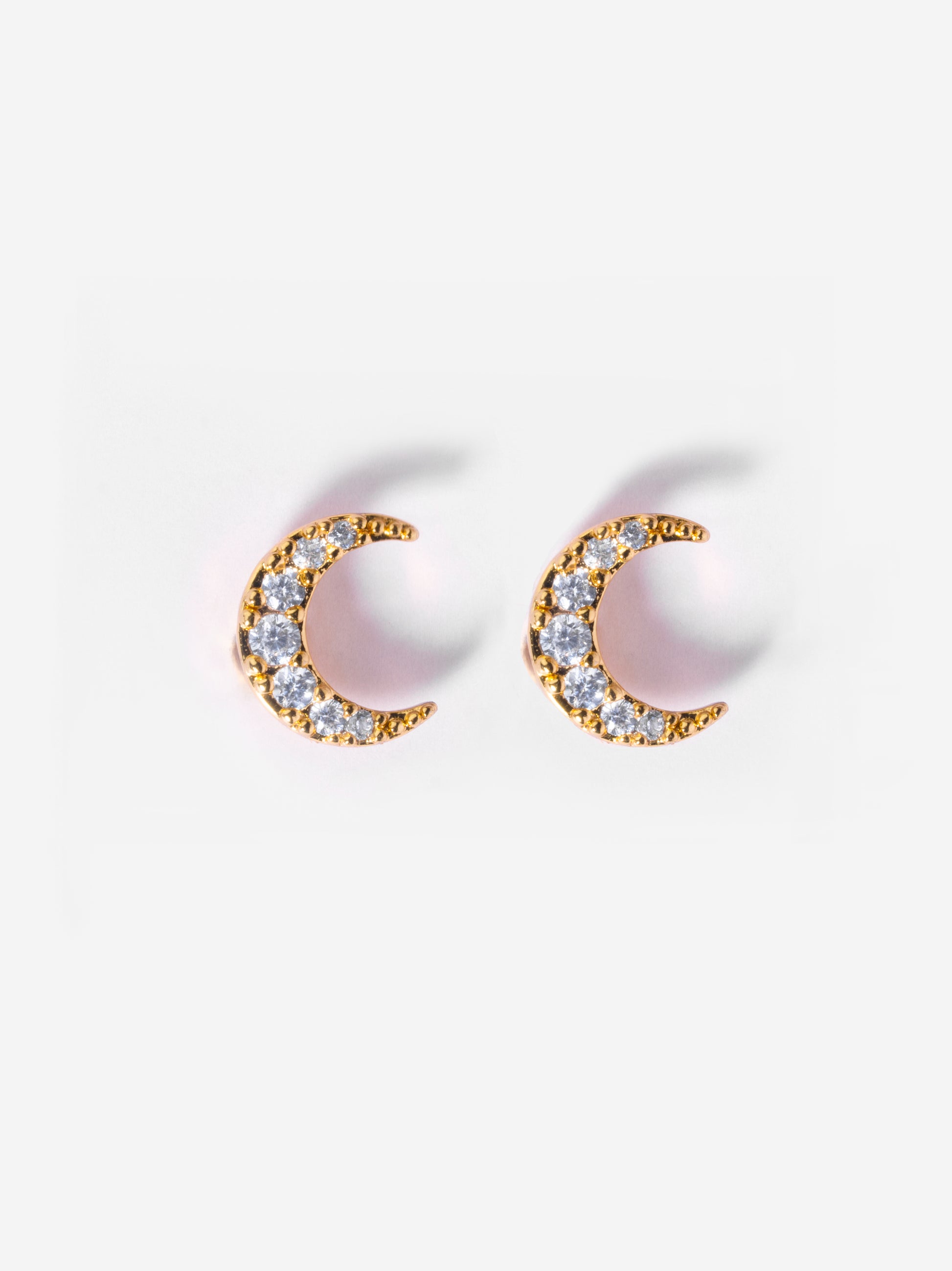 •Flat-back moon studs with white stones — perfect for any piercing to elevate your ear stack