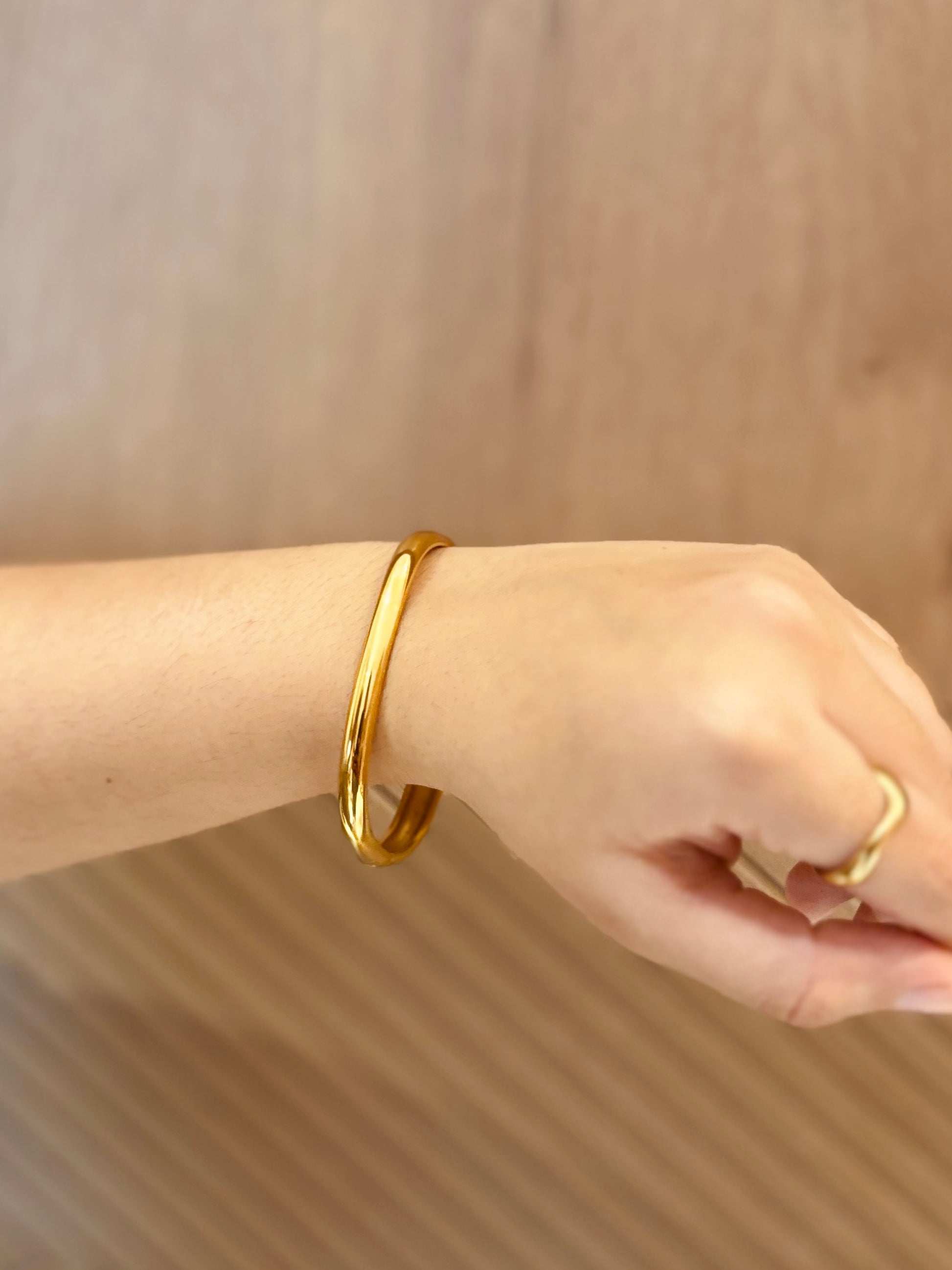 Designed for slimmer wrists — the angular shape keeps it perfectly in place like a true bangle.