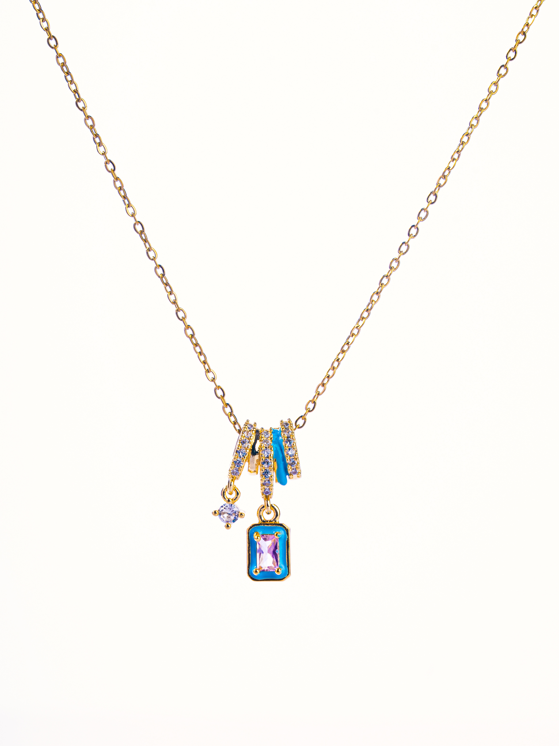 - Elegant Design: Delicate charms with soft blue, pink, and white stones.